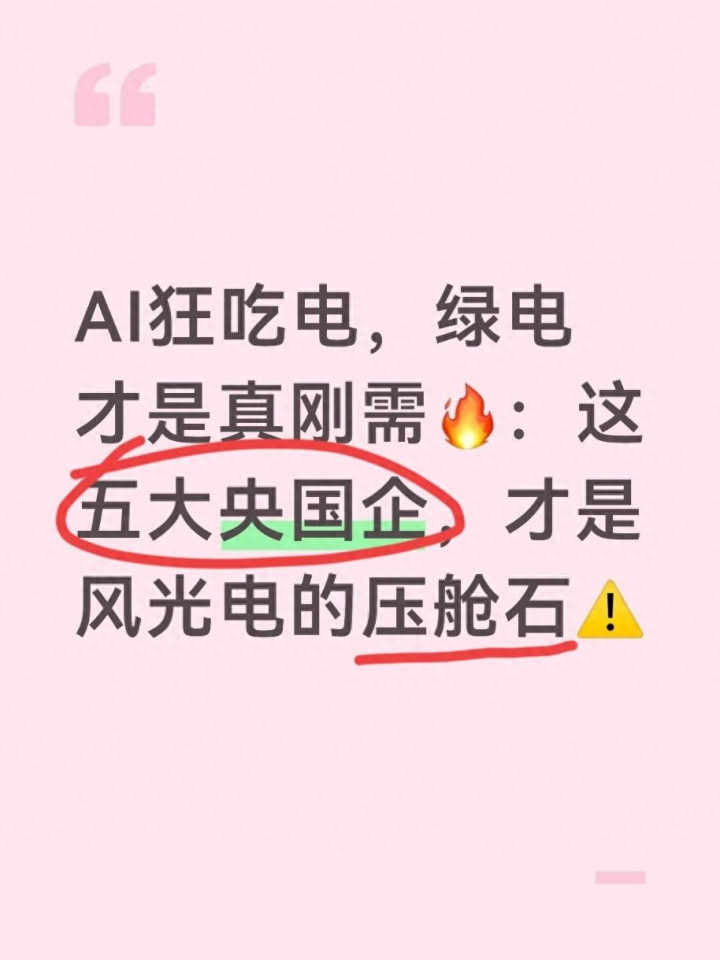 今天这篇文章,我们不讲虚的概念,不搞夸张炒作,用最实在的逻辑,深度梳理五大绿电央国企龙头。从风电、光伏、海上风电、陆上风电到低估值修复,把每家的核心优势、适合人群、长期逻辑讲透,帮大家看懂AI时代下,绿电板块最确定的机会。